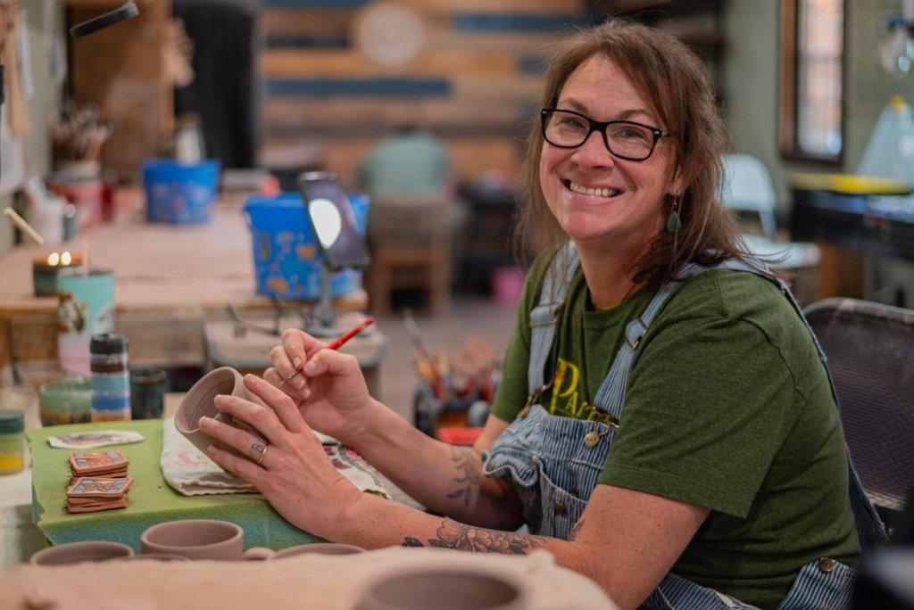 Begin at Arrowhead Gallery & Studios for rotating exhibits, pottery classes, and workshops. Visit Turtle Island Pottery, where Maggie Jones crafts distinctive stoneware. Continue to Grove Hill Pottery & Farm, where Leslie Bradsher creates pottery on her historic family farm and transforms goat and alpaca fiber into handspun yarn and felted accessories. Don’t miss NANU Gallery, Katie McWeeney’s contemporary studio, featuring curated exhibits and workshops.
