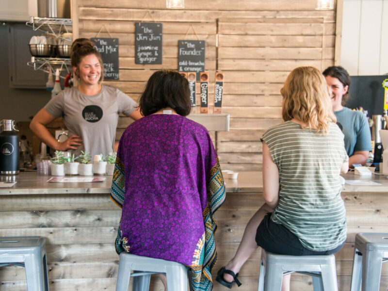 Nestled in Waynesboro just 3 miles from the Blue Ridge Parkway North Entrance, Blue Ridge Bucha, Virginia’s first full-service kombucha brewery and taproom is a must-see. Their family-friendly taproom has eight draft lines of delicious, Certified Organic kombucha. Tastings, small bites, outdoor patio, kids play area, and WiFi are available. See website for seasonal hours. Photo by Cappy Phalen.