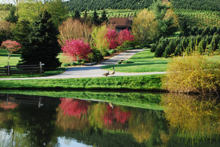 The beautiful property includes 40 acres of Fraser Fir Christmas Trees, three stocked fishing ponds, 5 miles of hiking trails and nature paths, a state stocked trout stream and lovely landscaped grounds.