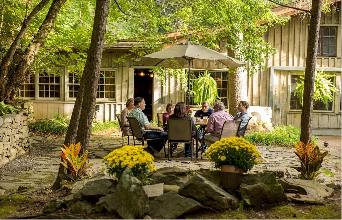 The Historic building and dining room are open mid-April through Thanksgiving. The cabin and fireplace suites are open all year.