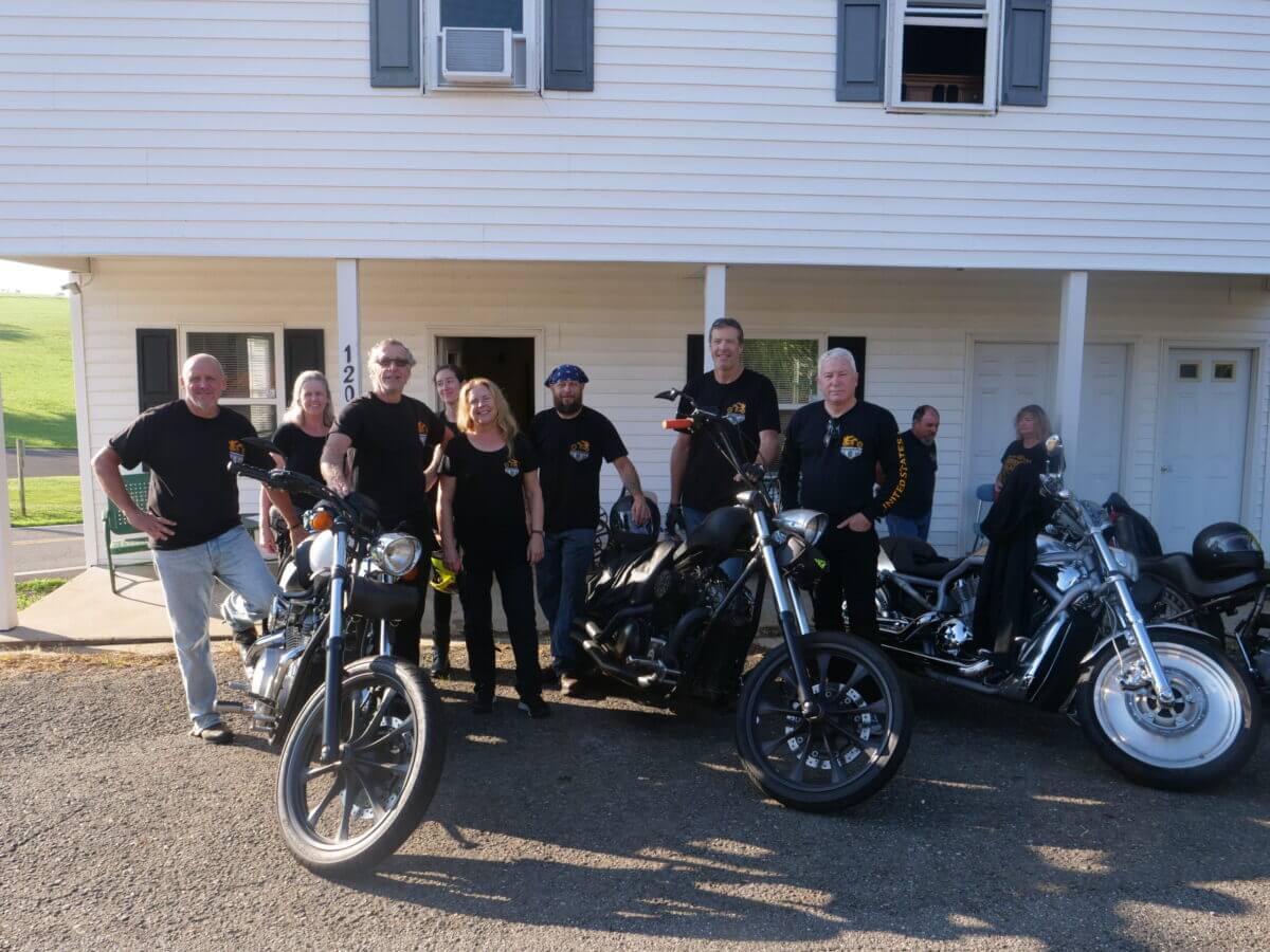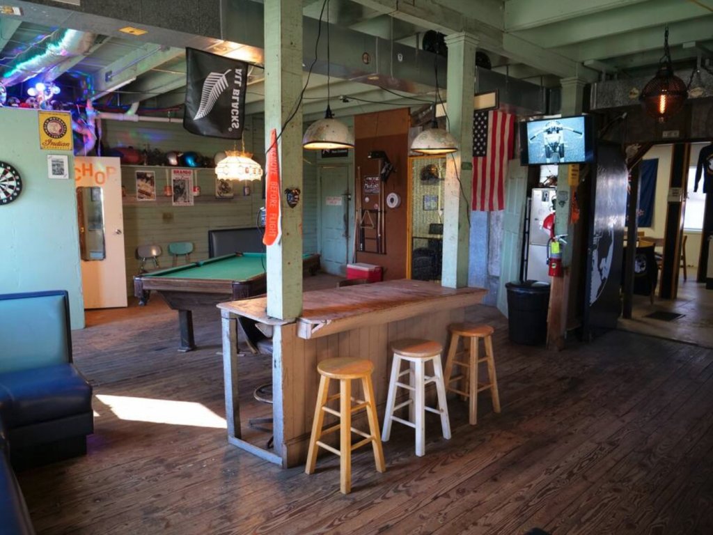 Our roadhouse is a bikers’ heaven! It is located in Woodlawn VA, just 15 minutes from Parkway Milepost 199.4. It provides lodging for over 16 people. On the bottom floor is a workshop, on the middle floor is a bar, pool table and dart board. The top floor has bunkhouse-style lodging. Camping is also available. Our address is 1203 Woodlawn Rd, Woodlawn, VA 24381. You can book via Airbnb or Booking.com.