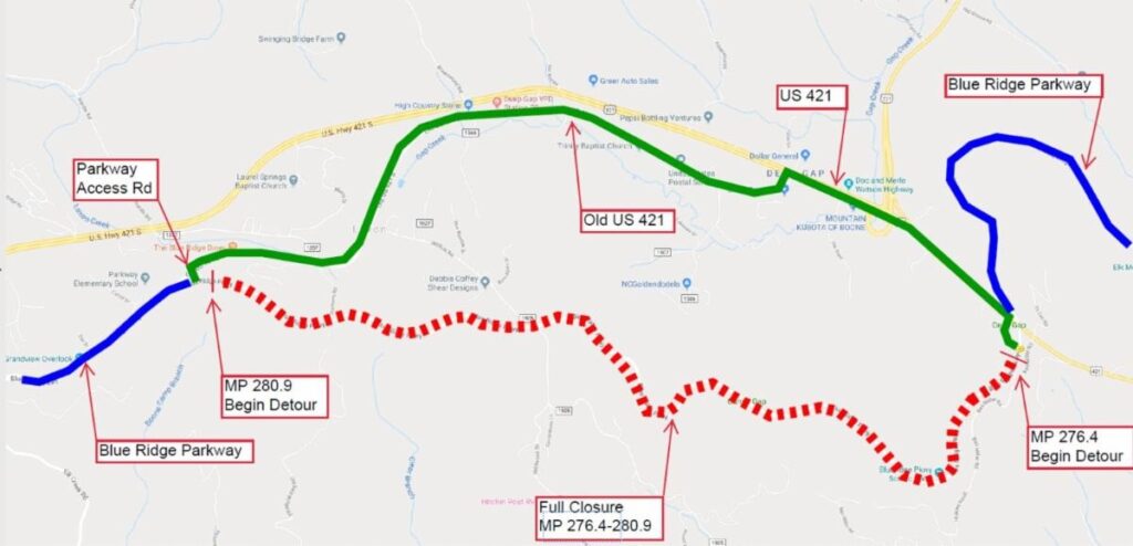 Have a safe trip and be prepared while traveling the Blue Ridge Parkway by regularly checking closure maps and daily status updates throughout your road trip. Remember, an open Parkway is a safe Parkway. Avoid vacation roadblocks, practice road safety on your Blue Ridge Parkway drive, and enjoy the ride of a lifetime.