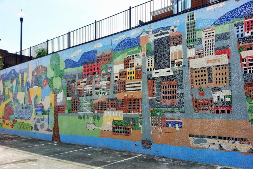 Lynchburg, VA Mosaic Mural - Donate your time- The Park Service depends on partner organizations and volunteers to help keep the Parkway’s 469 miles, eight campgrounds, 15 picnic areas, 272 overlooks and miles of trails beautiful and user-friendly. Among other options, you can be a Habitat Defender in Shenandoah National Park, Adopt an Overlook along the Parkway, or Adopt a Trail in the Great Smoky Mountains National Park. Contact a partner organization or the Park Service via the links above to find an available opportunity near you.